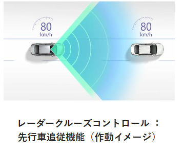 • 「レーダークルーズコントロール」搭載 高速道路で前の車についていく機能が追加!長距離移動の疲労が劇的に減ります。(※停止保持機能はなし)