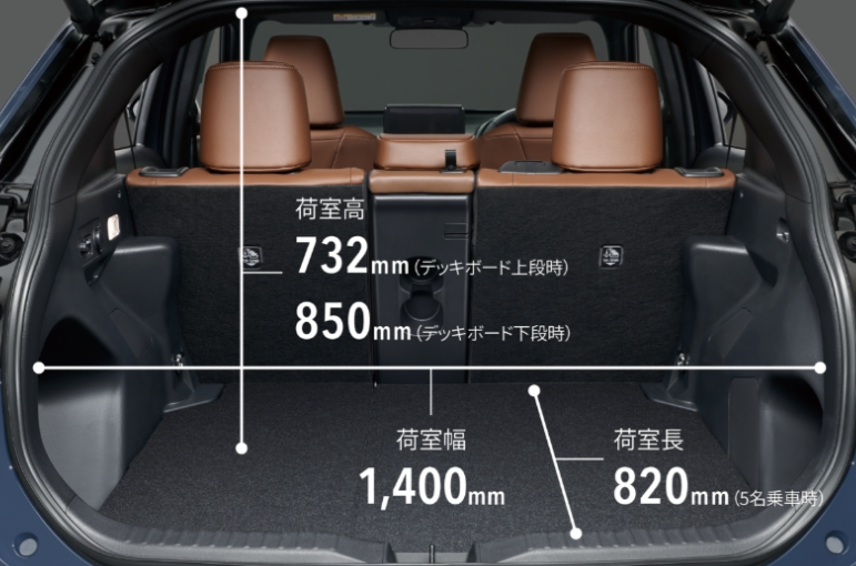 - クラストップレベルの広大な荷室 ヤリスクロスの真骨頂ともいえるのが、荷室(ラゲージスペース)の広さと機能性です。通常時でも390LというコンパクトSUVとしては最大級の容量を確保。スーツケースやベビーカーも余裕で積載可能です。さらに注目すべきは、床の高さを変えられる「アジャスタブルデッキボード」という賢い機能。